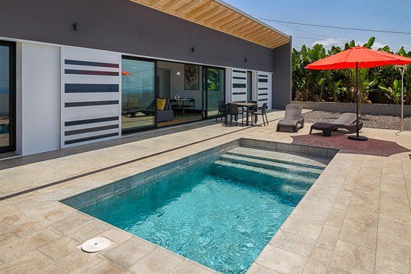 hochwertige Poolvilla für vier Personen. Die lichtdurchfluteten Räume sind in