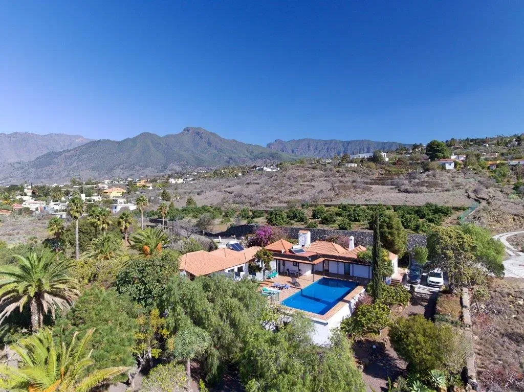 Traumhaft gelegenes, freistehendes Haus im kanarischen Stil auf riesigem Gartengrundstück mit Pool. 300m Höhe. Panoramablick.