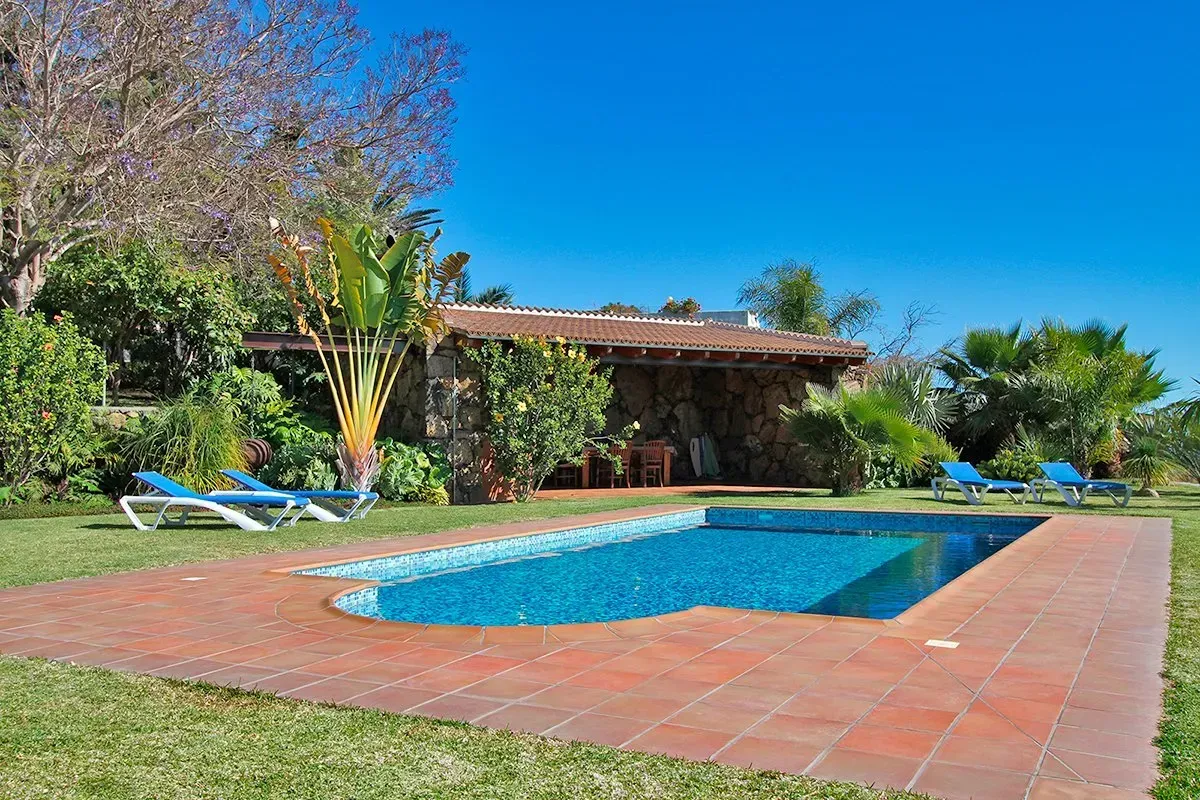 Luxus mit dem Zauber einer alten Finca in einem riesigen Garten, Pool und mit weitem Blick über den Atlantik